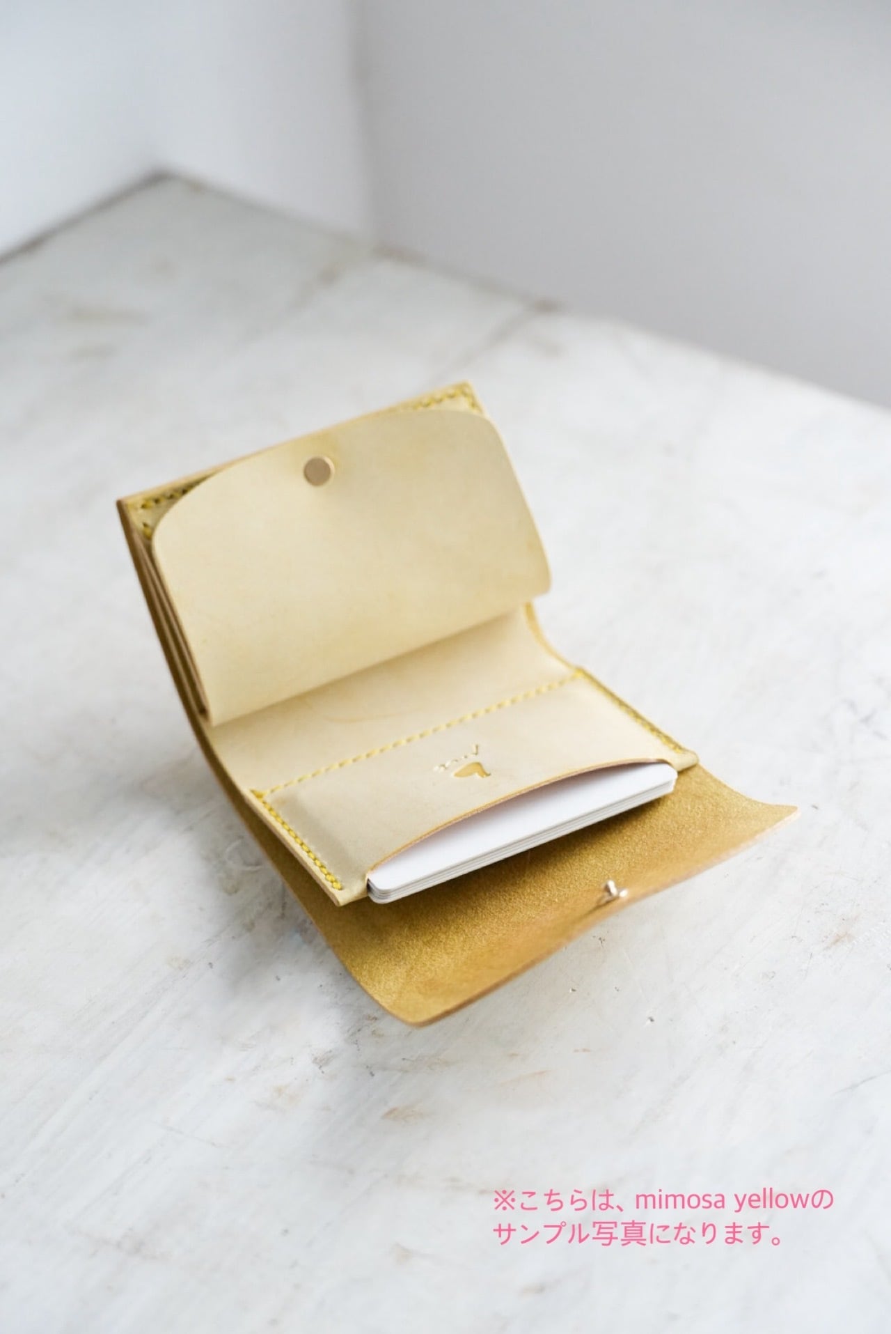ステッチ(糸の色)には「黄色」を合わせ、さりげないアクセントを添えています。